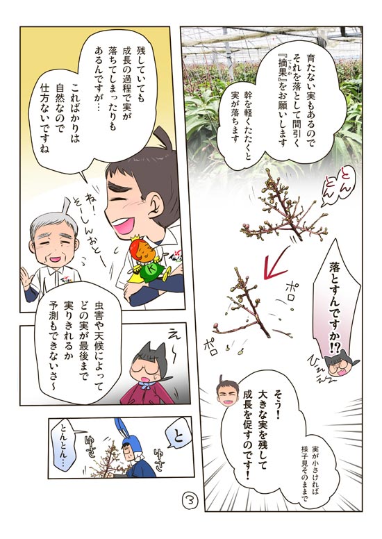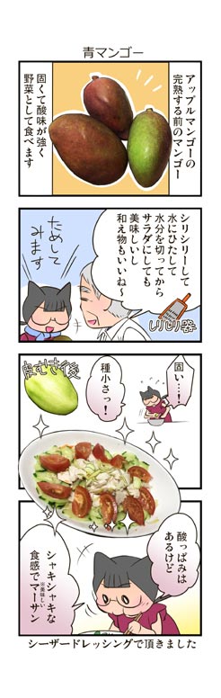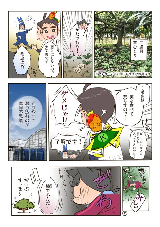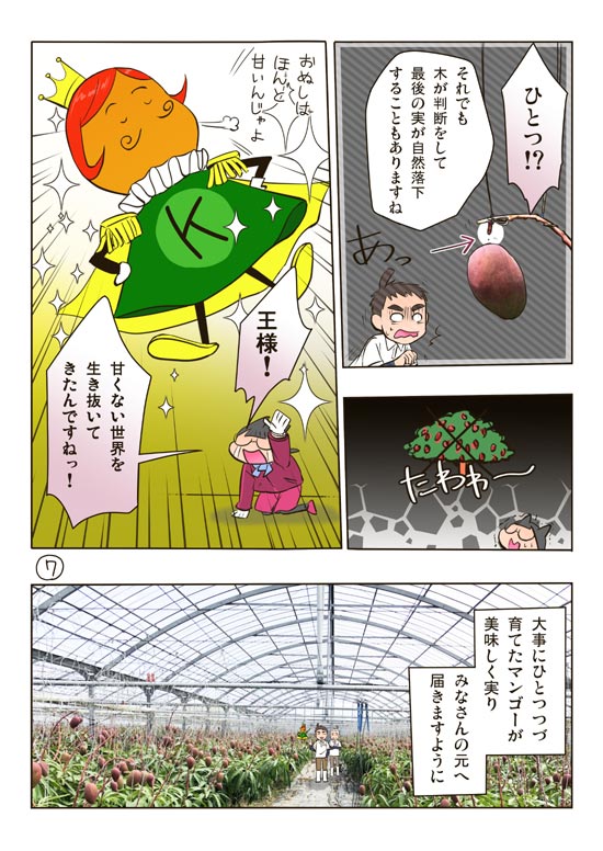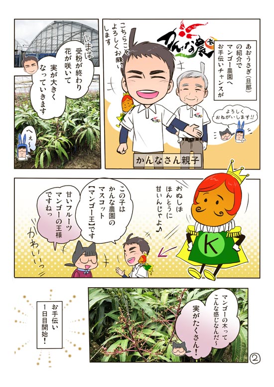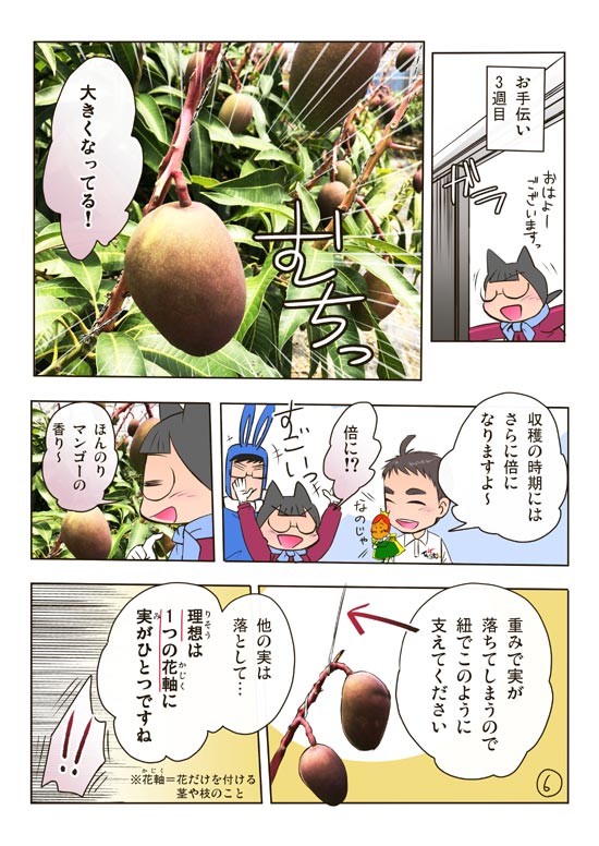 マンゴーのお手伝いをしている時に話が思いつき、かんなさんから許諾を頂いて『糸満かんな農園さんのマンゴー園編』を描きました。