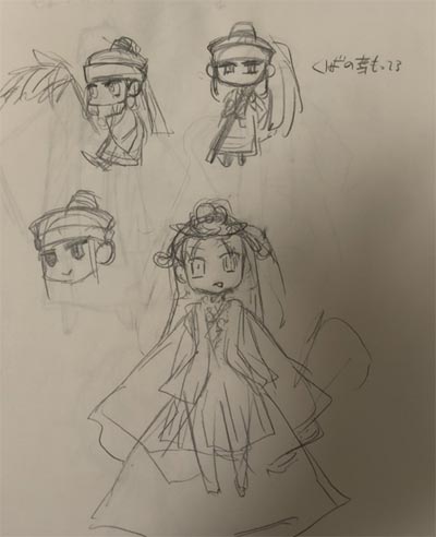 モチーフを一度描いてみて、イメージをラフで何パターンかかいてみました。